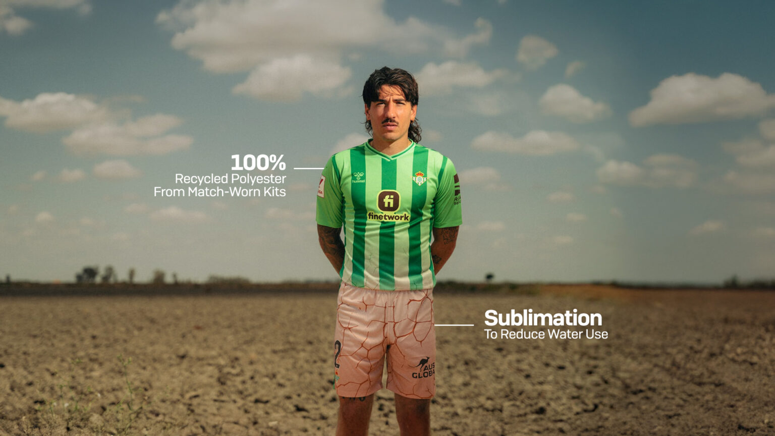 Real Betis, known for its environmental values, made a statement. The team replaced its iconic green jersey with a cracked-earth brown version. The reveal happened during a match focused on awareness, where the club also measured football’s water footprint for the first time.